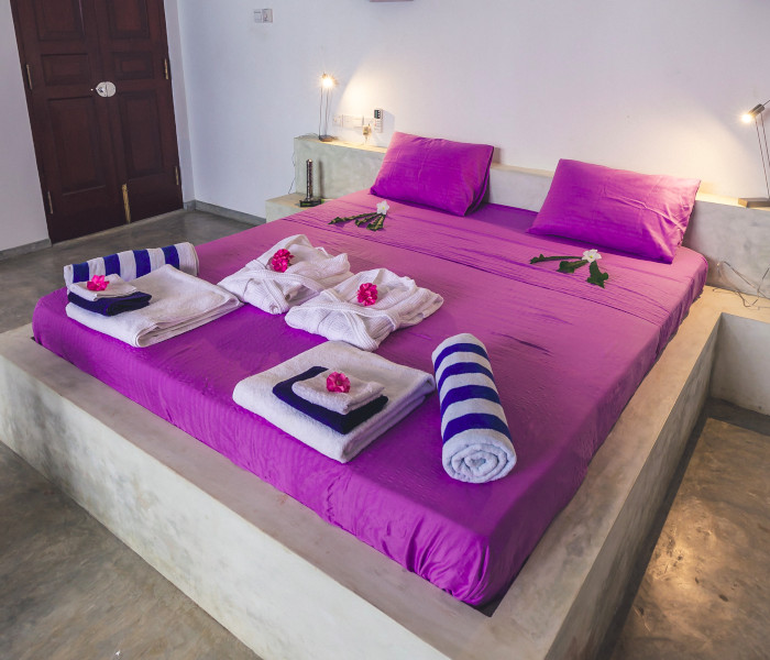 Our rooms are spacious, large with high ceilings, open air wash rooms, terrace with beach or tropical